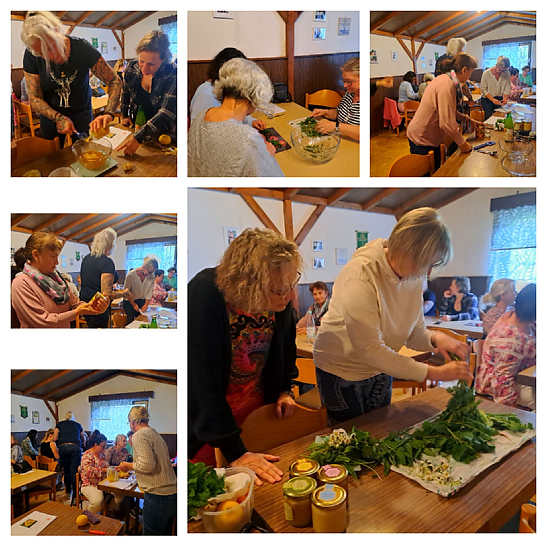 Der Höhepunkt des Workshops war zweifellos der praktische Teil, bei der die Teilnehmer unter Anleitung von Annette Georg drei verschiedene Oxymel zubereiteten. Ein Oyxmel ist im Grunde genommen eine Mischung aus Essig und Honig, die mit Kräutern und anderen Zutaten aus der Natur angereichert werden kann.