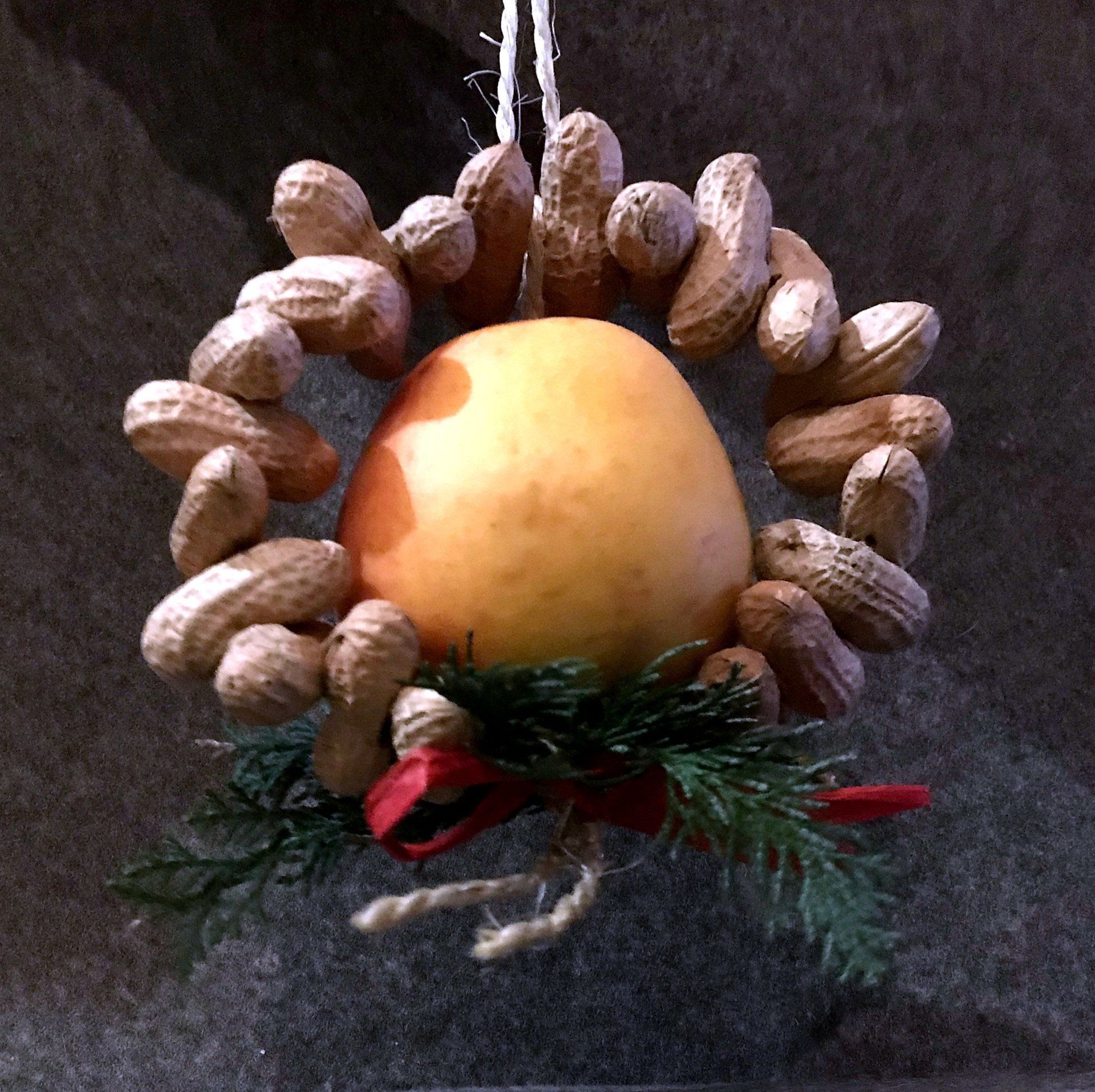 Gebastelt wurde mit Äpfeln, Erdnüssen, Zweigen, Sisalbändern und Draht.