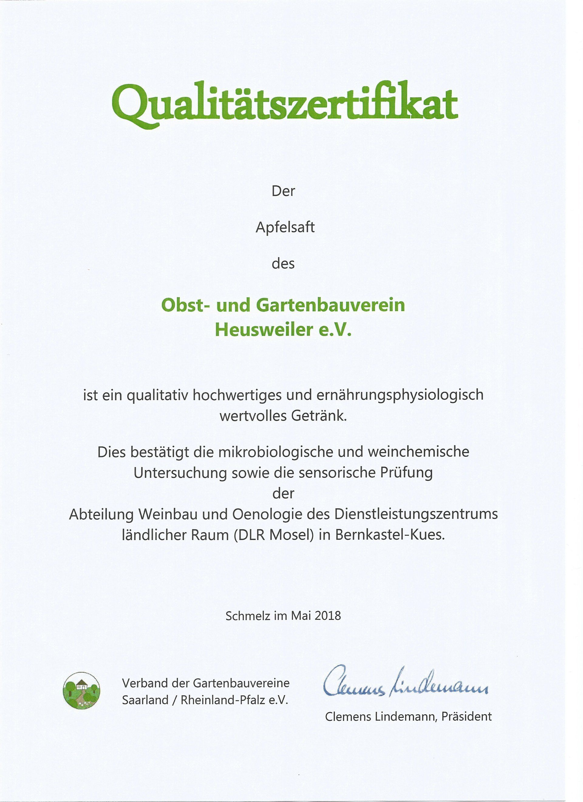 Die Verkosterkommission bestätigt, dass es sich bei unserem Apfelsaft um ein qualitativ hochwertiges und ernährungsphysiologisch wertvolles Getränk handelt.